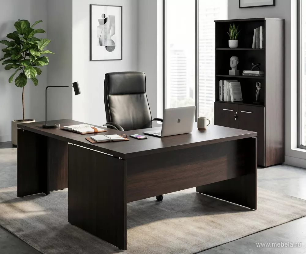 Если вы привыкли выделяться из общей серой массы, то мебель для кабинетов Фермо отлично поможет это сделать. Блестящие развернутые ножки столов, волнистая геометрия полок в открытых шкафах и еще множество дизайнерских приемов прекращают простую офисную мебель Fermo в произведение современного искусства.