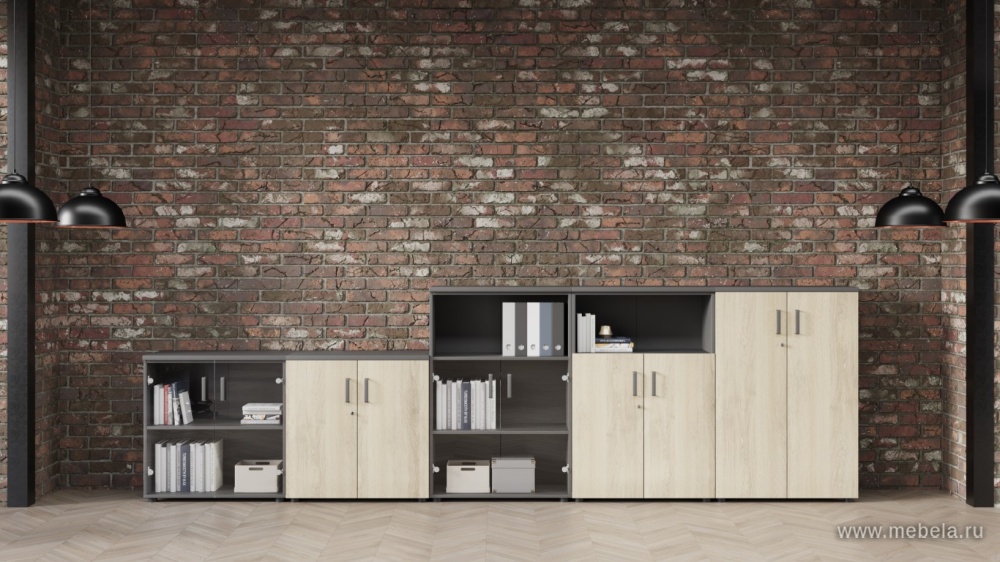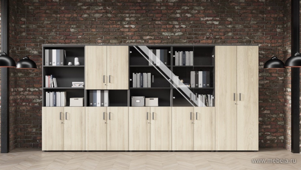 Офисный шкаф комбинир. со стеклом + открытая полка