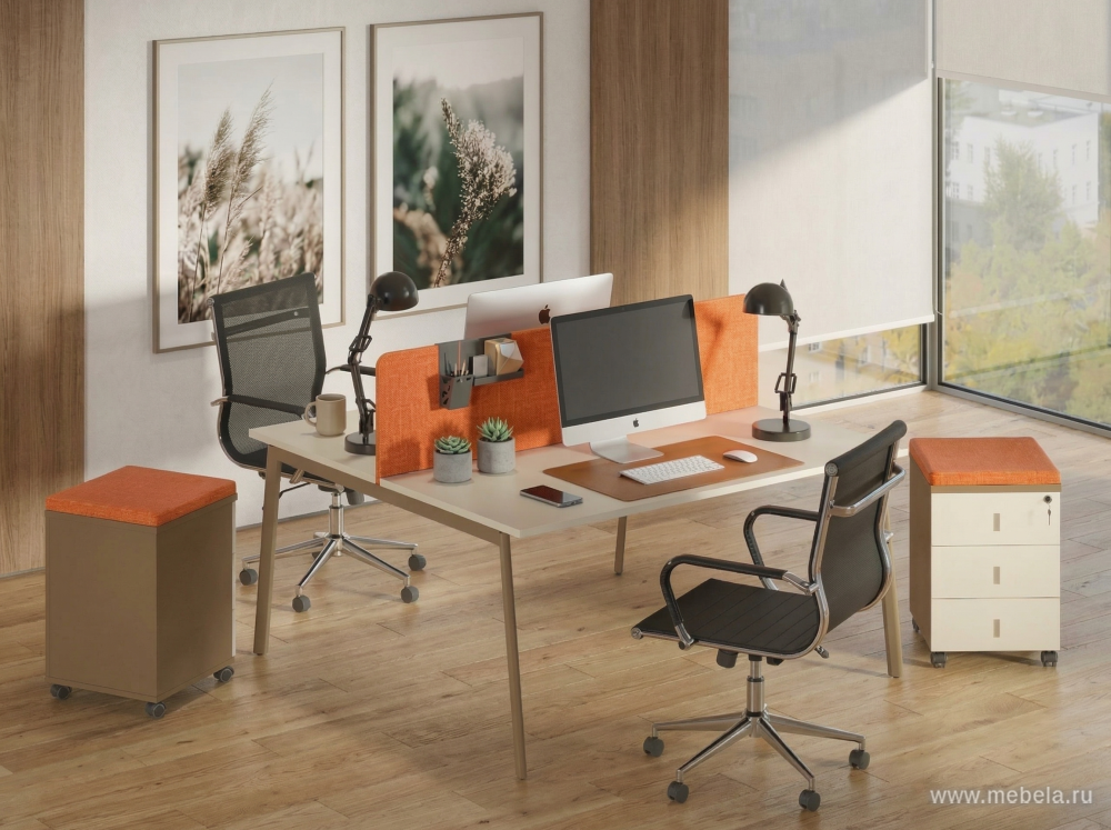 Металлический каркас столов рабочих станций, изготовлен из трубы диаметром 38мм или из плоскоовальной трубы сечением 60х30мм, все металлические элементы в том числе лючки и кронштейны окрашены порошковой краской, цвет - Латте.