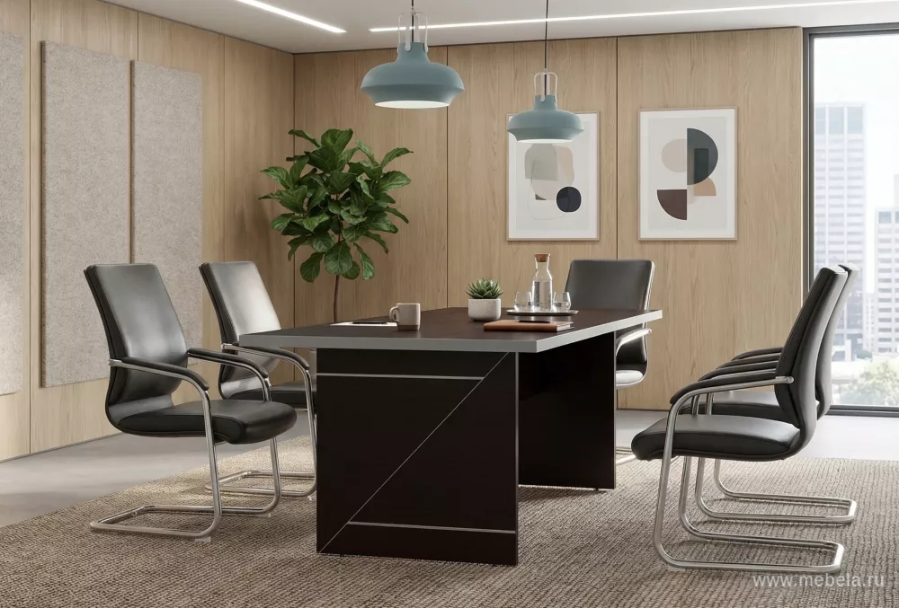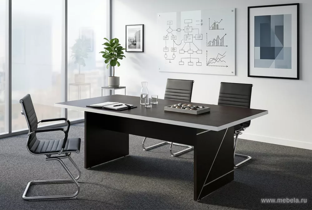 Если вы хотите внести в свой офис изюминку оригинальности и сделать его непохожим ни на один другой, то столы для переговоров Zoom в цвете Венге реализуют такой замысел превосходно. Их уникальный декор боковых опор и отделка торцовых элементов панелей обеспечивают динамичный яркий образ.